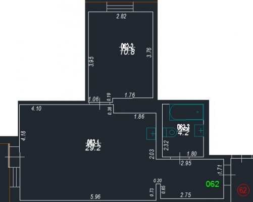 Informācija par dzīvokli: 2 istabas, 1.stāvs, kopējā platība 44,2 m2.